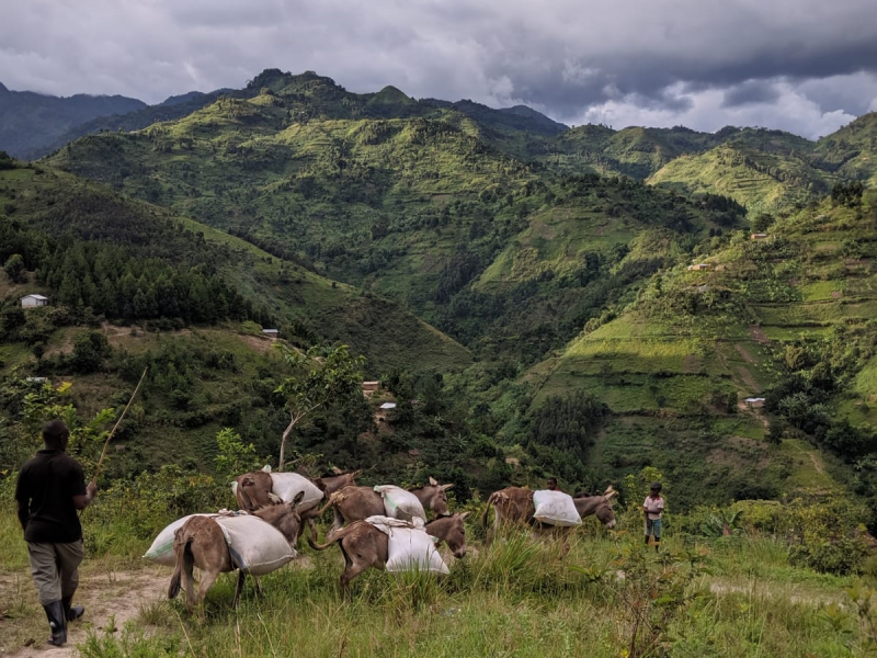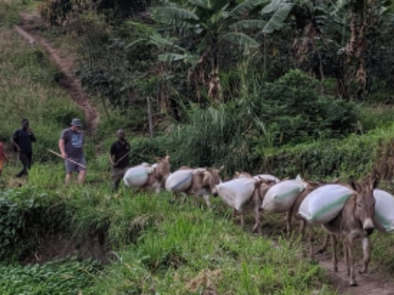 山脈のある一帯は国立公園にも指定され、独特な見た目の高山植物がたくさんあり、その生態系に魅了される人々も多くいます。コーヒーはその山のふもとから中腹付近の標高1,200~1,800メートル程度の地域で栽培されています。道が細く、車は通れないため、農家さんたちの荷物の運搬やコーヒーの運搬にはロバが活躍しています。